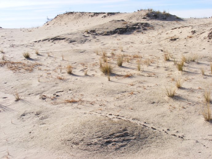 Сверху песка, тончайшее покрывало земли и мха. Мох под ногами шуршит и трескается. Покрывало мохнатое. Раздолье для джиперов.