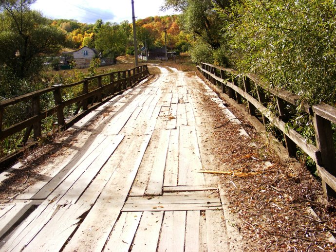 Странно, но перила на металлолом не украли. Да и не р. Тетлежка это вовсе, а так — мостик через пересохший ручеек в селе.