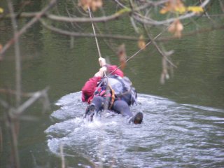 Все подготовили — прусик, полиспаст — привязали к машине, Потянули, по чуть-чуть, чуть-чуть, чуть-чуть. Тянется. Ну и хорошо. И оказывается это сделано только половина. Нужна еще одна веревка. Возможны варианты, что на этап будут приходить по несколько групп, и процесс нельзя останавливать. Время!