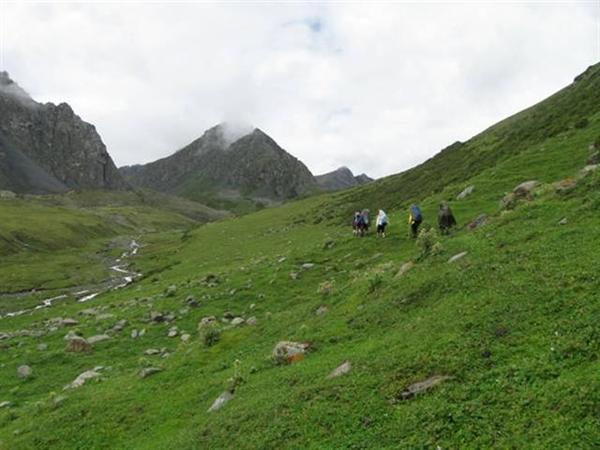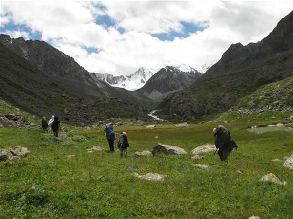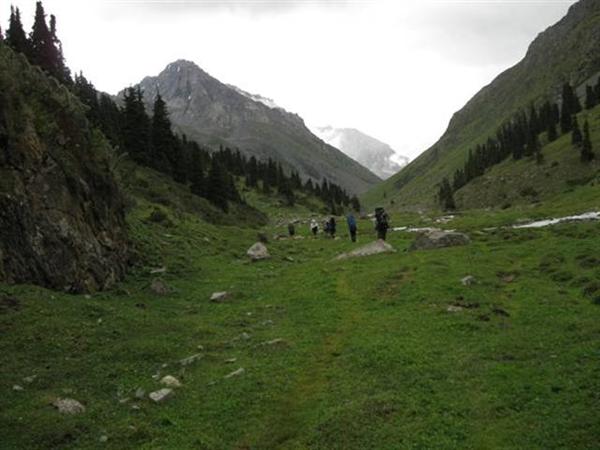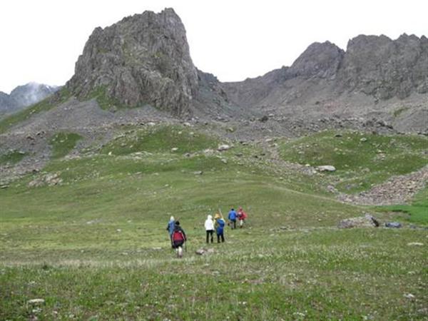 Перевал находится в северном отроге хребта Терскей-Алатау и соединяет долины рек Алтын-Арашан и Каракол. Группа поднималась радиально из д.р. Алтын-Арашан. Подход к перевалу начинаем от курорта Алтын-Арашан по левому (ор.) берегу реки по хорошей тропе. Долина ровная, местами заболочена. Через 2 часа подходим к урочищу Эки-чат — месту слияния рек Чон-Узень и Таштек-тор (Фото 1).