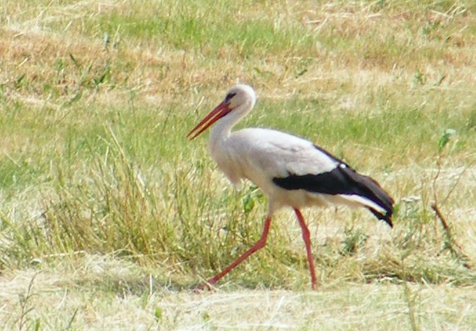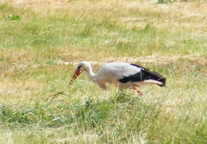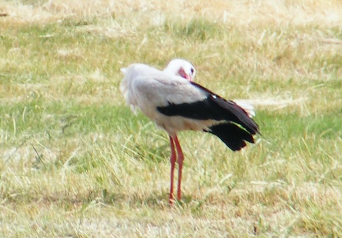Выйдем в поле размять те места на которых сидим. Хорошо! А тут еще и аист пасется. И шаг — снимок. Еще один — еще снимок.