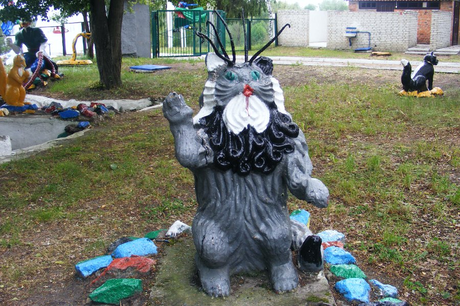 Буратинка после драки с поломанным носом. И кот с ресницами? Кот-баюн?