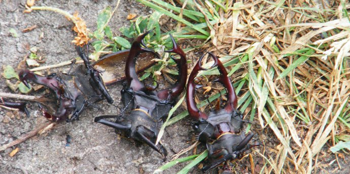 Хм… интересное побоище, видимо, неравных сил. Что произошло, какая катастрофа повергла этих крупных насекомых в такое состояние нам не известно. Мало того, головы еще шевелятся, и головами усеяна вся тропинка. А где же остальное?
